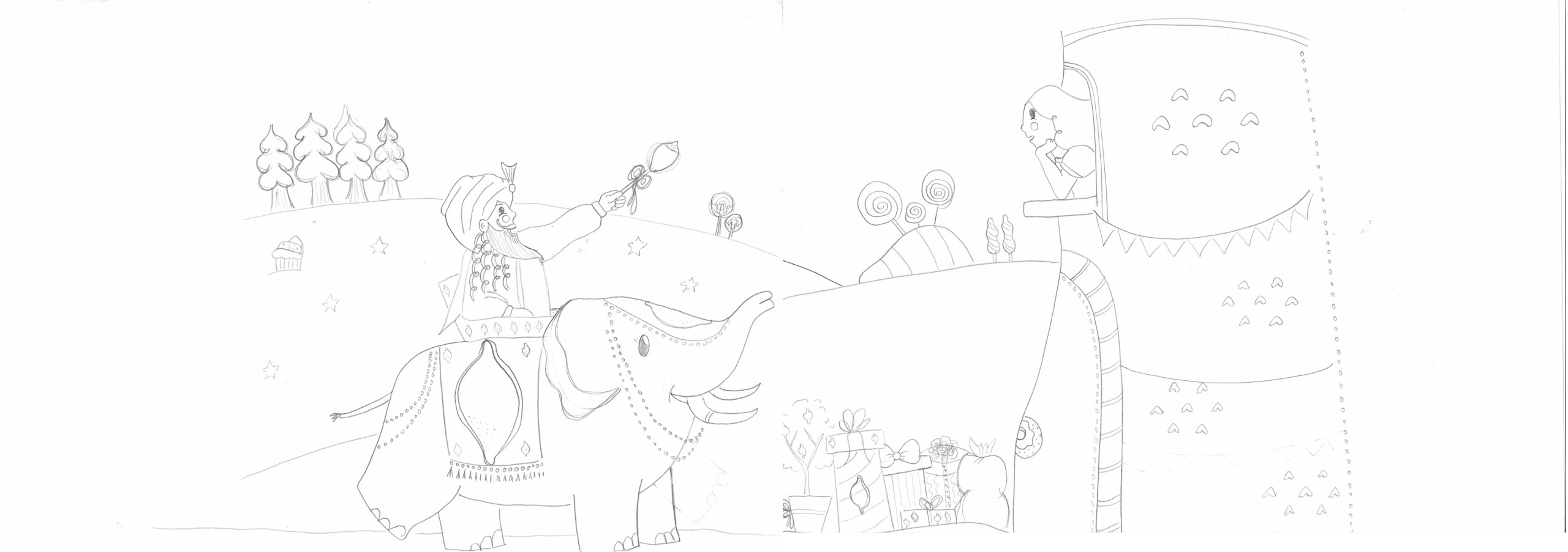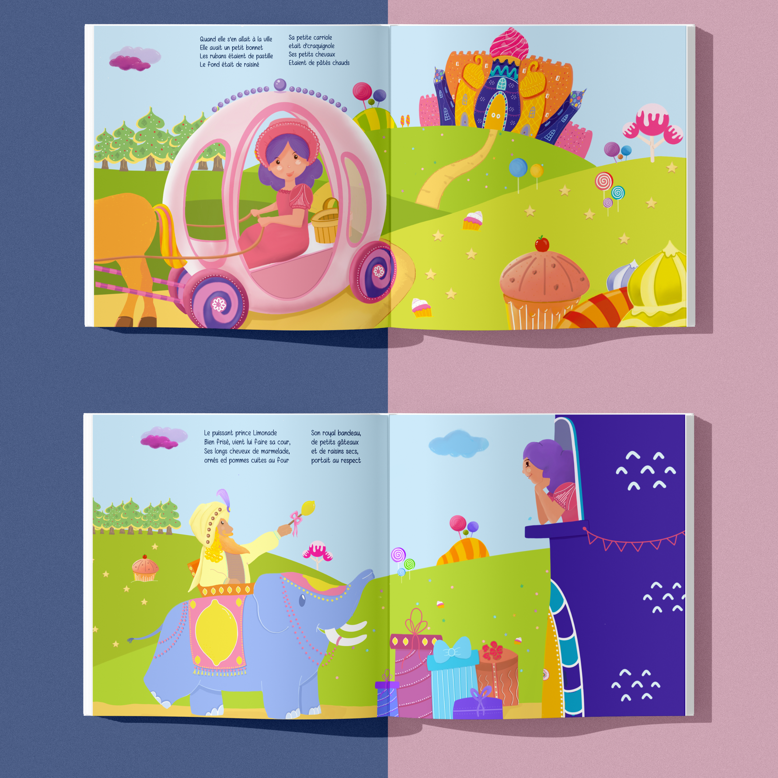 Proposer 2 illustrations en double page pour illustrer 2 couplets de la comptine au choix ainsi que la couverture.